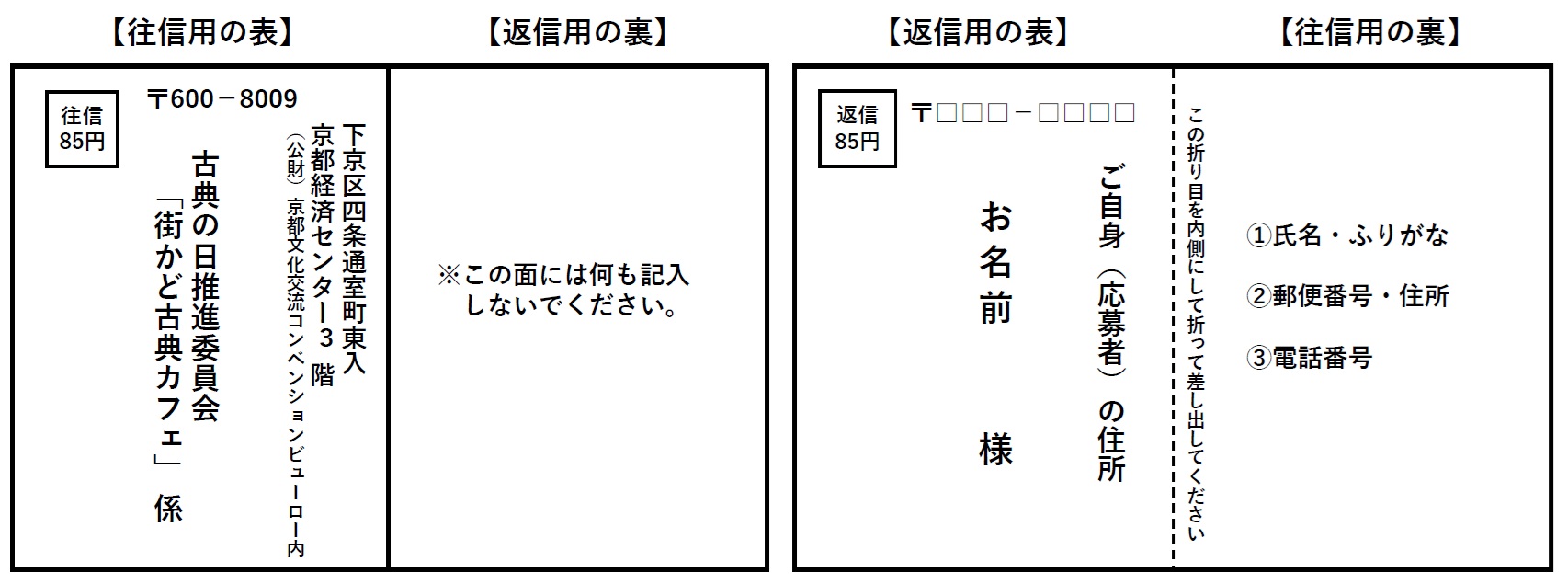 ●往復はがきの記入事項
