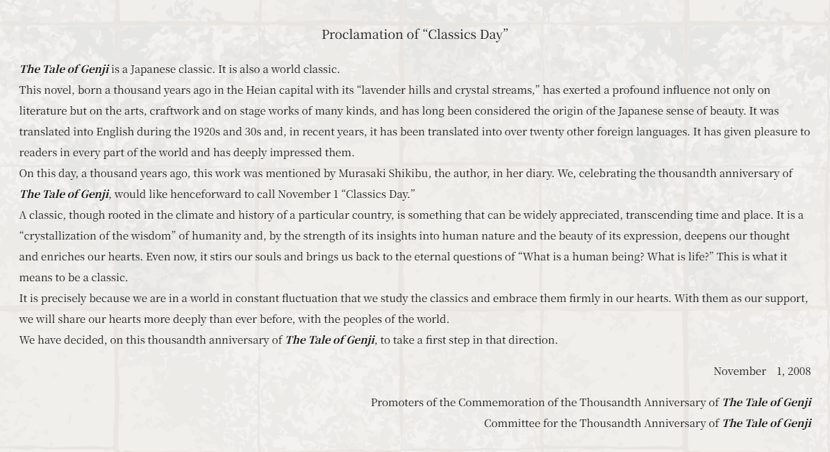 「古典の日」は源氏物語千年紀を記念して